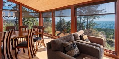 These window and door treatments give a soft and elegant look to your room, while also offering privacy. Choose from roller shades, honeycomb shades, natural woven shades, and sheer shadings.